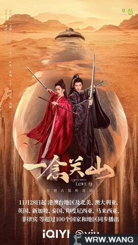 新云洗绯色,黄沙漫漫红衣长。江湖行远舟,关山阵阵万重霜。